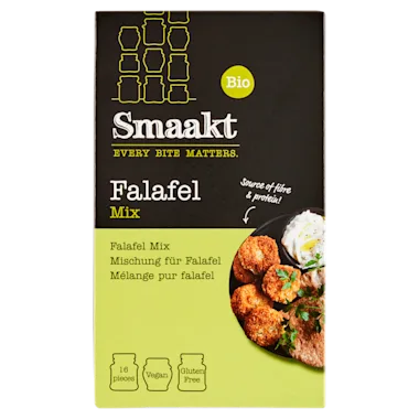 Ingrediënten: Kikkererwtengrutten*, kikkererwtenmeel*, zout, peterselie*, komijn*, knoflookpoeder*, koriander*, witte peper*, *=biologisch