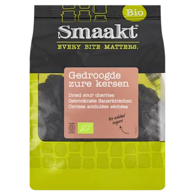 Ingrediënten: Gedroogde zure kersen* 99,8%, zonnebloemolie* <lt/> 0,2%, *=biologisch.