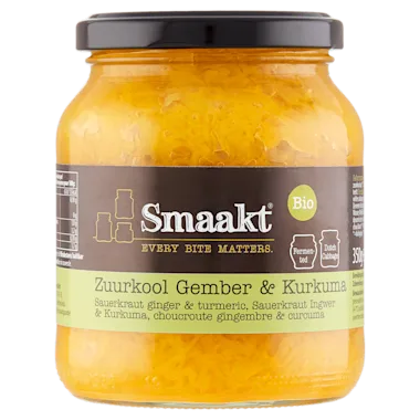 zuurkool** 41%, water, zuurkoolsap** 23%, gembersap* 5%, azijn*, zeezout, curcuma** <lt/>1%. *=biologisch, **=bio-dynamische demeter teelt.