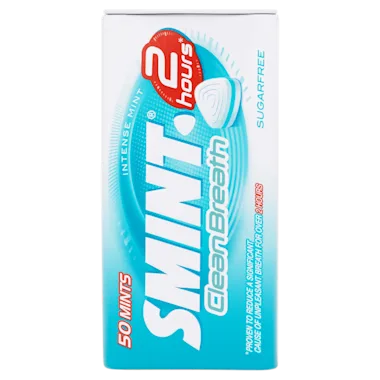 Extra zekerheid over een frisse adem? Dan hebben we voor jou Smint 2h(ours) Clean Breath Intense Mint voor 2 uur schone adem! Een intens verfrissend en suikervrij mintje in een handig, stevig blikje.