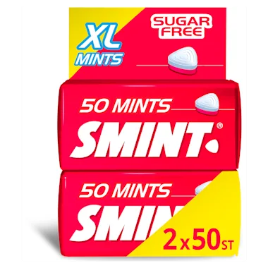 Smint Aardbeiensmaak is het suikervrije snoeperig mintje met aardbeismaak. Twee handige, stevige blikjes met elk 5 suikervrije mintjes.