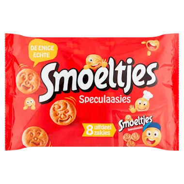 Ingrediënten: TARWEBLOEM, suiker, plantaardige oliën (palm, raapzaad, kokos), inuline, EI, maltodextrine, specerijen (waaronder kaneel), glucosestroop, zout, kandijstroop, invertsuikerstroop, emulgator (raapzaadlecithine), rijsmiddelen (natrium bicarbonaat, ammonium bicarbonaat), weipoeder (MELK), natuurlijk aroma. Kan pinda's, noten, haver, gerst en rogge bevatten.