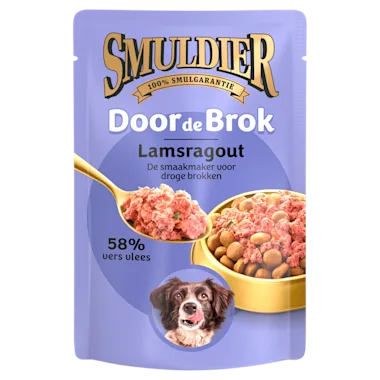Voeradvies: voeg 1 zakje Smuldier Door de Brok Ragout toe aan 200g brokken. Smuldier Door de Brok is een aanvullend voer, wat betekent dat het niet alle voedingsstoffen bevat die een hond dagelijks nodig heeft. Daarom is Smuldier Door de Brok uitermate geschikt als aanvulling op het hoofdvoer. Altijd voldoende vers drinkwater ter beschikking stellen. De behoeften van uw huisdier wat betreft voeding zullen verschillen overeenkomstig leeftijd, gewicht, geslacht, ras en activiteit. Aangezien het belangrijk is dat uw huisdier de juiste hoeveelheid voeding krijgt, raadpleeg het etiket/verpakking voor het complete, gedetailleerde voedingsadvies.