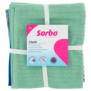 De Sorbo vaatdoek maakt jouw aanrecht in een oogwenk schoon, zodat je snel verlost bent van knoei-ongelukjes. De doek is namelijk gemaakt van hoogwaardig badstof, een katoenweefsel dat lekker veel water kan absorberen en geen pluisjes achterlaat. De doeken hebben een mooie antracietgrijze, olijfgroene en diepblauwe kleur.