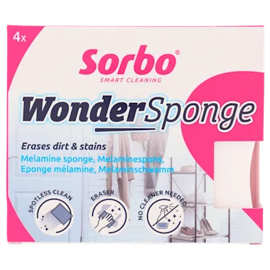 De Sorbo Wonder Sponge is een ideale spons om hardnekkige vlekken op gladde oppervlakken weg te poetsen. De spons is krasvrij en heeft geen schoonmaakmiddelen nodig om zijn werk te doen.