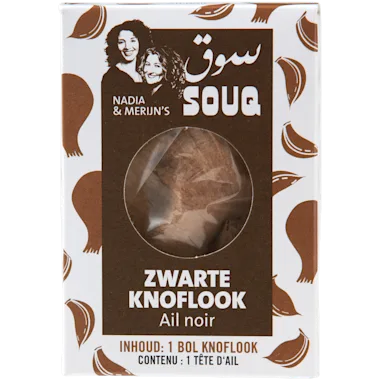 Verse knoflook uit La Mancha in Spanje wordt gedurende enkele weken onder gecontroleerde temperatuur en vochtigheids graad ‘gefermenteerd’. Hiermee krijgt het een mooi zachte textuur en verdwijnt de scherpte uit de knoflook. Het geeft een zoetige smaak met hintjes van drop en rozijnen. Lekker in sauzen en marinades en dressings. En het mooiste komt nog: je krijgt er geen slechte adem van!