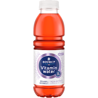 Koolzuurvrije drank op basis van bronwater met de smaak van braam en açai, met toegevoegde vitamine E en B6, met zoetstoffen.