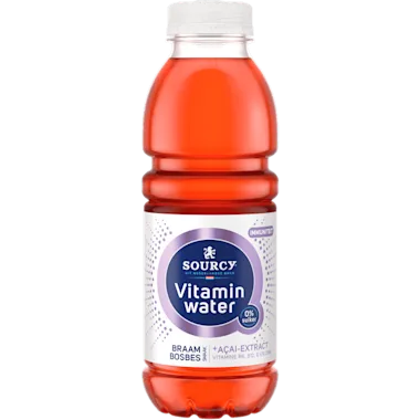 Koolzuurvrije drank op basis van bronwater met de smaak van braam en açai, met toegevoegde vitamine E en B6, met zoetstoffen.