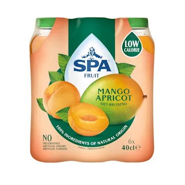 Ingrediënten: Spa® water 88,1%, vruchtensappen uit concentraat 10,0% (appel, citroen, sinaasappel, wortel, mango 0,1%, abrikoos 0,1%), suiker, acerola extract, zoetstof (steviolglycosiden uit stevia), stabilisators (pectine, johannesbroodpitmeel), natuurlijke aroma's.