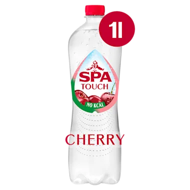 Spa Touch, Puur Bruisend water met een subtiele smaak van kers. No kcal en zonder suikers, zoetstoffen of andere toevoegingen. Uitsluitend bestemd om Spa® dranken te bevatten. 100% RECYCLED and recyclable bottle.