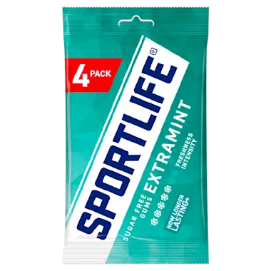 Sportlife Extramint, een suikervrije kauwgom met een heerlijke frisse smaak. Dankzij het verbeterde recept blijft de kauwgom nóg langer fris! De 4-pack bevat 4 pakjes met ieder 12 gums, handig voor in je tas of broekzak.