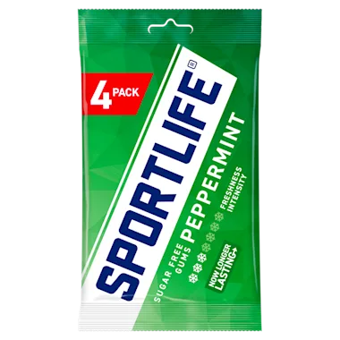Sportlife Peppermint, een suikervrije kauwgom met een heerlijke frisse pepermunt smaak. Dankzij het verbeterde recept blijft de kauwgom nóg langer fris! De 4-pack bevat 4 pakjes met ieder 12 gums, handig voor in je tas of broekzak.