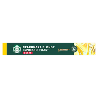Geniet nu thuis van deze Starbucks Blonde roast cafeïnevrije koffie voor jouw nespresso systeem. De blonde cafeïnevrije espresso roast is onze lichtst gebrande espresso, met een zachte, milde smaak. Lichte branding. Intensiteit 6.