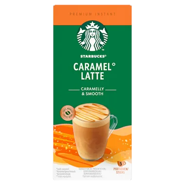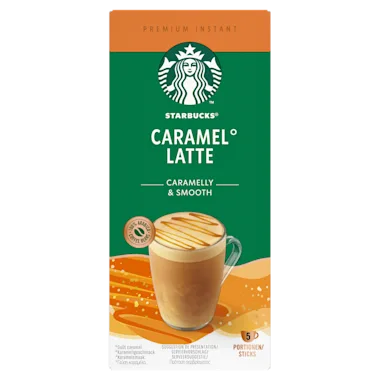 Geïnspireerd op de Starbucks® Caramel Machiatto. De Caramel Latte oploskoffie is makkelijk thuis te bereiden. Gemaakt met 100% Arabica koffiebonen. Onze vertrouwde Starbucks®- drank.