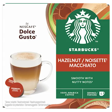 Geïnspireerd op de populaire Starbucks Hazelnut Macchiato. Proef de hemelse combinatie van espresso, melk en tonen van geroosterde hazelnoot. Thuis gemaakt met jouw Nescafe Dolce Gusto koffiemachine.