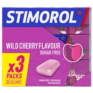 Kauwgom zonder suiker met zoetstoffen. Met kersensmaak.