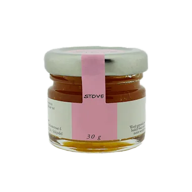 Ingrediënten: Peer (49%), suiker, Portugese wijn (SULFIET) (9,8%), fruit pectine, citroensap. Wordt geproduceerd in een bedrijf waar ook sulfiet en noten worden verwerkt.