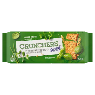 Ingrediënten: TARWEbloem, plantaardige oliën (zonnebloem, raapzaad), suiker, natuurlijk kaas aroma met andere natuurlijke aroma's (MELK), LACTOSE en MELKeiwitten, rijstebloem, glucosestroop, HAVERvezels, zout, gedroogde Italiaanse kruidenmix 1,1% (basilicum, oregano, peterselie, tijm, bieslook), natuurlijke aroma's, rijsmiddelen (natriumcarbonaten, difosfaten, ammoniumcarbonaten), gedroogde aardappelvlokken, gistpoeder, TARWEgluten, gedroogde prei, voedingsvezel (inuline), HAVER, magere MELKpoeder, GERSTEmoutextract, room (MELK), dextrose, emulgator (SOJAlecithinen)