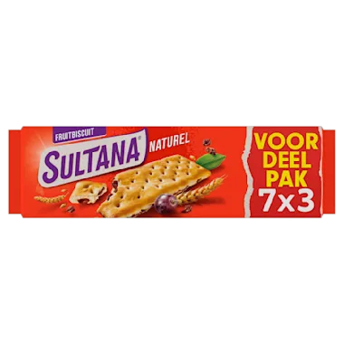 Sultana Naturel is een lekker en verantwoord tussendoortje waardoor je weer fruitig verder kunt! Deze fruitbiscuit is zoet van smaak omdat hij rijkgevuld is met rozijnen en krenten.