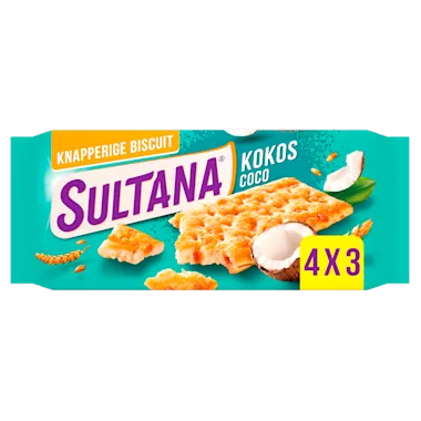 Sultana Kokos is een lekker en verantwoord tussendoortje waardoor je weer fruitig verder kunt! Een knapperige biscuit met stukjes kokos in het biscuitdeeg.