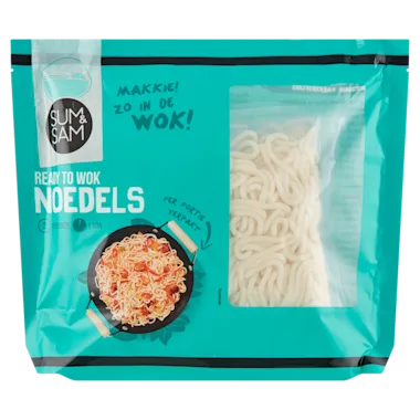Verwarm de noedels nog 1 minuut mee in het wokgerecht.