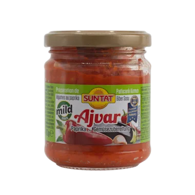 rode paprika (75%), aubergines (18%), zonnebloemolie, zout, knoflook, suiker, azijn.