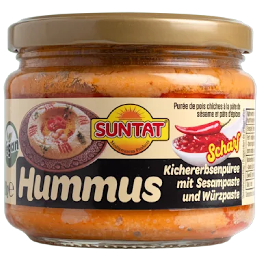 Ingrediënten: Kikkererwten (53%), water, TAHIN (10%), zonnebloemolie, sambal oelek saus (2,5%), knoflookpuree, zuurteregelaar: citroenzuur, emulgator: zonnebloem lecithine, zout, komijn, antioxidant: ascorbinezuur.