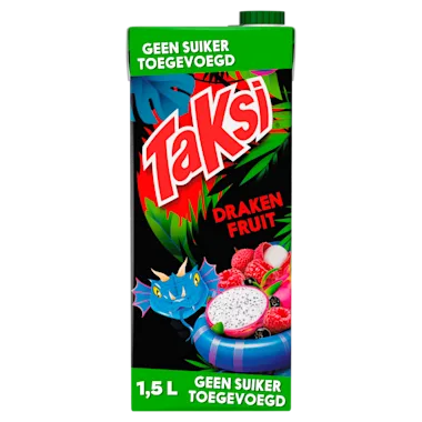 Taksi Drakenfruit is een heerlijke mix van sap uit draken fruit, framboos en lychee. Een smaakexplosie met zuivel en rijk aan vitamine C. Deze Taksi bevat alleen van nature aanwezige suikers uit fruit en zuivel. Er is geen suiker toegevoegd.