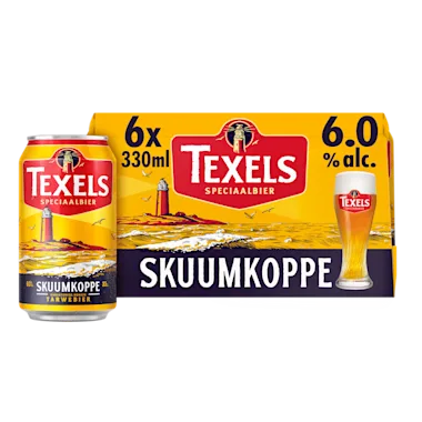 Texels Skuumkoppe (6.0%) is een bovengistend donker tarwebier, gebrouwen van natuurlijke ingrediënten. Dit speciaalbier dat zijn naam ontleent aan de witte koppen op de golven van de zee, is vol van smaak met hints van karamel en abrikoos en heeft een romige, licht zoete afdronk. Texels Skuumkoppe is een bier dat bij ieder seizoen past. Een bier puur, robuust en recht door zee, net als Texel zelf.