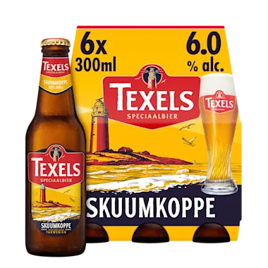 Texels Skuumkoppe (6.0%) is een bovengistend donker tarwebier, gebrouwen van natuurlijke ingrediënten. Dit speciaalbier dat zijn naam ontleent aan de witte koppen op de golven van de zee, is vol van smaak met hints van karamel en abrikoos en heeft een romige, licht zoete afdronk. Texels Skuumkoppe is een bier dat bij ieder seizoen past. Een bier puur, robuust en recht door zee, net als Texel zelf.