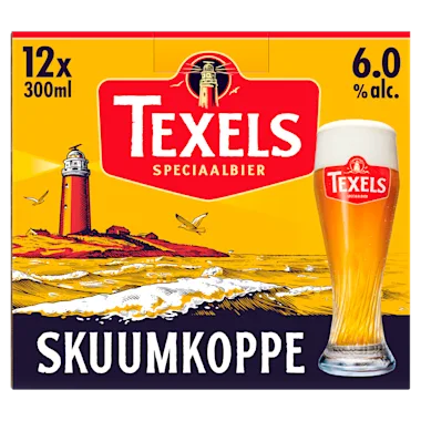 Texels Skuumkoppe (6.0%) is een bovengistend donker tarwebier, gebrouwen van natuurlijke ingrediënten. Dit speciaalbier dat zijn naam ontleent aan de witte koppen op de golven van de zee, is vol van smaak met hints van karamel en abrikoos en heeft een romige, licht zoete afdronk. Texels Skuumkoppe is een bier dat bij ieder seizoen past. Een bier puur, robuust en recht door zee, net als Texel zelf.