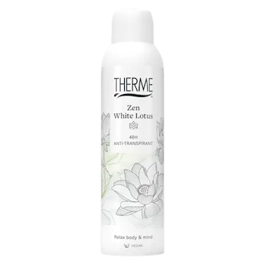 Therme Zen White Lotus Anti Transpirant biedt 48 uur effectieve bescherming tegen transpiratiegeur en vochtvorming. Geniet van de serene geur van witte lotus gecombineerd met aromatische jasmijn en subtiele witte musk.