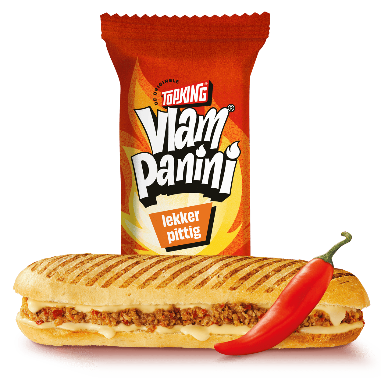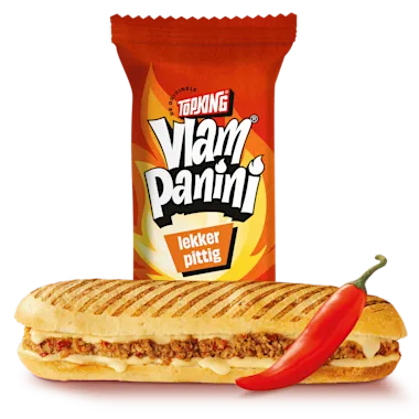 Vriesverse panini's belegd met de originele Vlammetjes® vulling van lekker pittig gekruid gehakt en kaas.