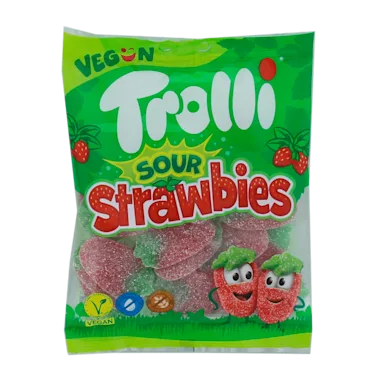 Ingrediënten: suiker; glucosestroop; gemodificeerd zetmeel; voedingszuren: citroenzuur, appelzuur; aroma; zuurteregelaar: natriummalaat; kleurende levensmiddelen (zwarte aalbessen, wortel); kleurstof: curcumine, briljantblauw FCF.