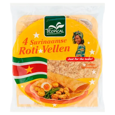 Ingrediënten: Volkoren TARWEbloem (61%), water, raapzaad olie, glycerine, roti kruidenmix (smaakversterker: E621, kruiden en specerijen, aardappelzetmeel, kruidenextracten, losmiddel: cellulose E460), zout, dextrose, appelzuur, rijsmiddelen (E450i, E500ii), emulgator (E471), stabilisatoren (guargom, carboxymethylcellulose), conserveermiddelen (E202, E282), broodverbeteraar (L-Cysteine plantaardig).