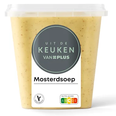 Ingrediënten :Water, 13% MOSTERD (water, MOSTERDZAAD, natuurazijn, zout, suiker, kruiden, specerijen), aardappel, kookroom (room (MELK), gemodificeerd maiszetmeel, stabilisator: E407/E331/E466, emulgator: E471), prei, ui, gemodificeerd tapiocazetmeel, zonnebloemolie, knoflook, zout, zwarte peper, suiker, kurkuma, natuurlijke aroma's, aroma, kaliumzout.