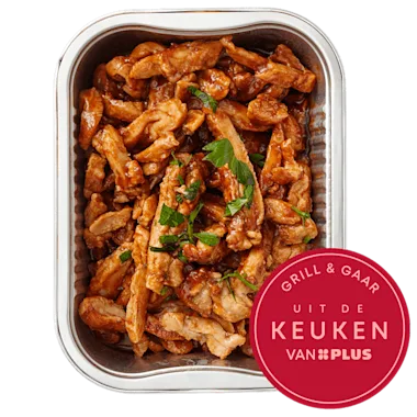 Gegaarde kipdijfiletreepjes in saus met ketjapsmaak