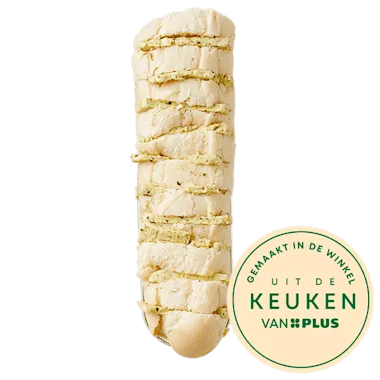 stokbrood (tarwebloem, water, bakkerszout, bakkersgist, dextrose, tarwemoutmeel, antioxidant: e300, koolzaadolie), boterbereiding met kruiden (roomboter (melk), water, kruiden (peterselie, bieslook, dragon, oregano, kervel), specerijen, knoflookpoeder, uipoeder, zout, gistextract, zoethoutwortelpoeder, suiker, conserveermiddel: e270/e202, voedingszuur: citroenzuur).