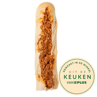 Gehaktbal (55% varkensvlees, 30% rundvlees, SCHARRELEI, TARWEBLOEM, voedingszuur: E326/E262/E330, zout, specerijen, TARWEZEMELEN, dextrose, conserveermiddel: E202), wit tarwebolletje (66% TARWEBLOEM, water, bakkersgist, weipoeder (MELK), suiker, bakkerszout, TARWEGLUTEN, SOJABLOEM, dextrose, emulgator: E482/E471, glucose-fructosestroop, raapzaadolie, TARWEMOUTMEEL, MELKEIWITTEN, erwteiwit, enzym (TARWE), meelverbeteraar: E300/E920 (plantaardig), aroma (MELK)), mayonaise (68% raapolie, water, azijn, 5% VRIJEUITLOOPKIPPENEI-EIGEEL, suiker, MOSTERD (water, MOSTERDZAAD, azijn, kurkuma), zout, verdikkingsmiddel: xanthaangom/guarpitmeel, conserveermiddel: E202, natuurlijk aroma, antioxidant: E385, kleurstof: carotenen).