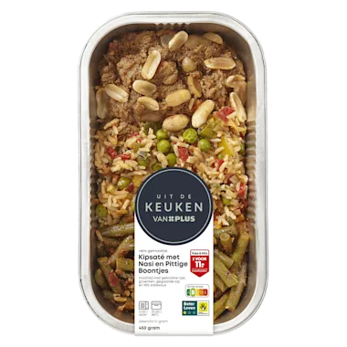 Uit de keuken van PLUS Kipsaté met pittige boontjes nasi