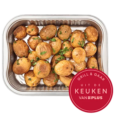 aardappel, olijfolie, knoflook, zeezout, tijm, peterselie, bieslook.