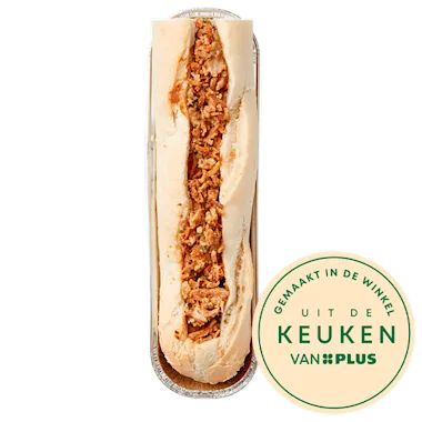 stokbrood (TARWEBLOEM, water, bakkersgist, bakkerszout, TARWEMOUTMEEL, meelverbeteraar: E300), kipdijfiletreepjes (kipdijfilet, voedingszuur: E262/E326/E330, aardappelzetmeel, zout, dextrose, conserveermiddel: gebufferde azijn, rozemarijnextract, zonnebloemolie), satésaus (water, PINDA, ketjap (melasse, suiker, water, SOJASAUS (water, SOJABONEN, TARWE, zout), zout), ui, gember, suiker, gemodificeerd maïszetmeel, knoflookpuree, sambal (rode peper, zout, conserveermiddel: azijnzuur), conserveermiddel: gebufferde azijn, raapzaadolie, groentebouillonpoeder (ui, knoflook, tomaat, wortel, pastinaak, prei, specerijen (SELDERIJ), kruiden (SELDERIJ)), zout, azijn), gebakken uitjes (ui, palmolie, TARWEBLOEM, zout), peterselie.