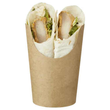 Gemarineerde en gepaneerde kipdijfilet (gemarineerde kipdijfilet (kipdijfilet, zonnebloemolie, azijn, rijstmeel, zout, specerijen, tijm, aardappelzetmeel, maltodextrine, paprikaconcentraat, gistextract, gebrande suiker, aroma, gerookt zout, natuurlijk aroma), paneermix (TARWEBLOEM, kruiden, specerijen (MOSTERD), zout, aroma's (SOJA), dextrose, gist, kleurstof: carotenen, maltodextrine, water, suiker, zonnebloemolie, GERSTEMOUTEXTRACT, rijstmeel, emulgator: E472e, paprikaconcentraat, gistextract, uipoeder, zoethoutwortelpoeder)), tortilla (TARWEBLOEM, water, stabilisator: E422, raapzaadolie, suiker, zout, rijsmiddel: natriumbicarbonaten, voedingszuur: E296, conserveermiddel: E202/E282, emulgator: E472), rauwkostmix met komkommer (komkommer, BLEEKSELDERIJ, prei, witte kool, rode paprika), dressing met honing en mosterd (water, raapolie, azijn, suiker, honing, MOSTERDMEEL, zout, VRIJE-UITLOOPKIPPENEI, VRIJE UITLOOPKIPPENEI-EIGEEL, MOSTERDZAAD, verdikkingsmiddel: E412/E410/E415, citroensap, gemodificeerd maïszetmeel, conserveermiddel: E202, antioxidant: E385, kleurstof: carotenen), rucolamelange (lollo rosso, rucola, red chard).