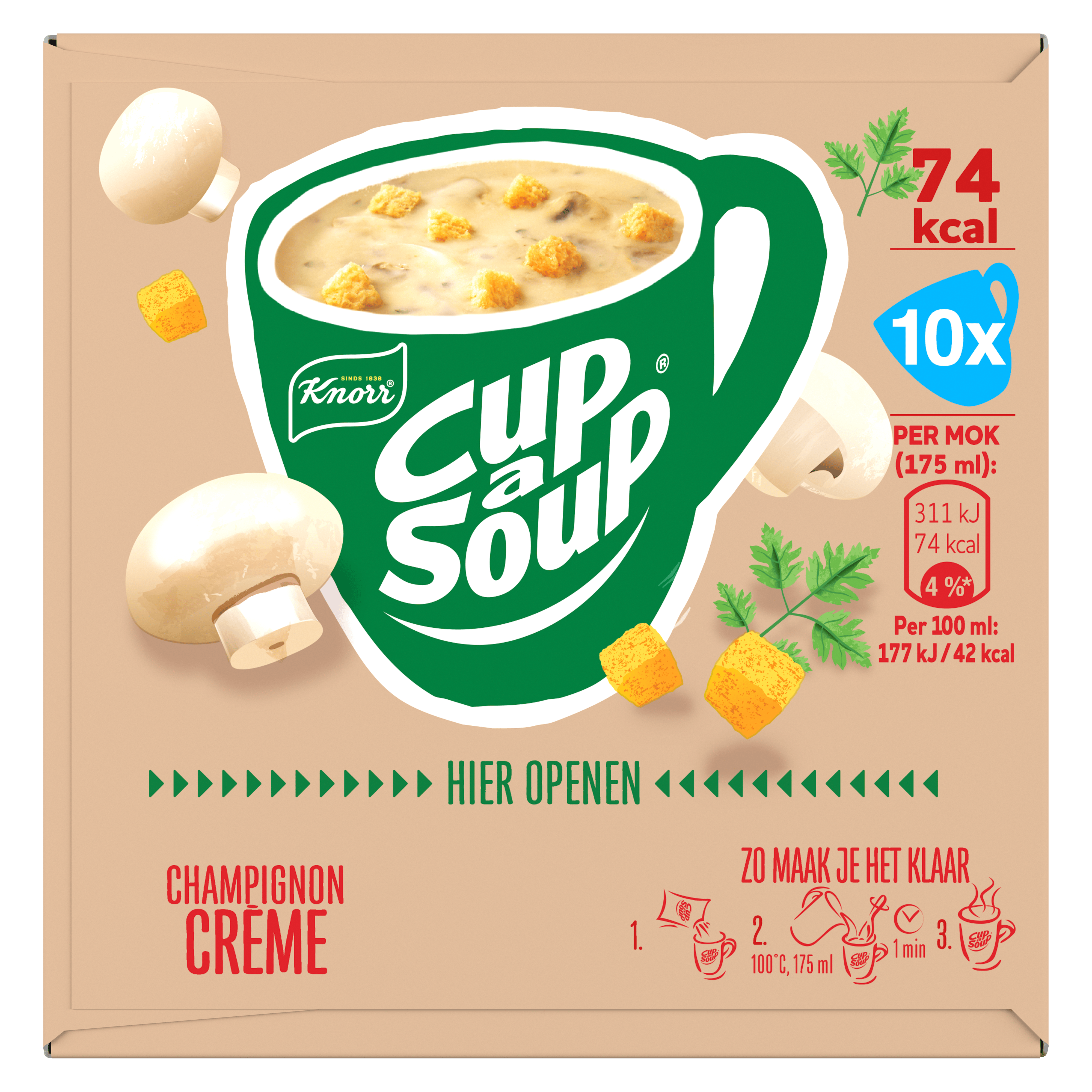 Heb je behoefte aan een hartig momentje tussendoor? Cup-a-Soup is een snelle en makkelijke keuze voor elk moment van de dag. Of je nu thuis bent, op kantoor of onderweg — een warme mok Cup-a-Soup geeft je de boost om weer door te gaan. Cup-a-Soup is een hartig tussendoortje dat je helpt om even op te laden. Met een breed assortiment aan smaken is er voor ieder wat wils. Van vertrouwde klassiekers zoals Tomaat, Kip en Champignon Crème tot verrassende varianten zoals Indiase Kerrie, Franse Ui, Asperge en Mosterd — een ruime keuze uit smaken die precies aansluiten bij jouw behoefte. 4 uur Cup-a-Soup, dat zouden meer mensen moeten doen!