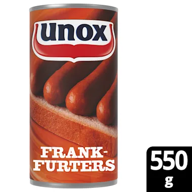 Unox Frankfurters zijn eigenlijk uit de kluiten gegroeide knakworsten. De worsten zijn gekruid volgens authentiek Duits recept, maar gewoon gemaakt in het Brabantse Oss. Hiervoor gebruiken we alleen die ingredienten die nodig zijn om een lekker, sappig worstje te maken. Daarom zijn de Unox Frankfurters bereid met varkensvlees met de unieke Unox-kruiding, die bestaat uit met zorg geselecteerde specerijen. Hierbij worden geen toegevoegde smaakversterkers gebruikt. Met deze heerlijke Unox Frankfurters weet je zeker dat je iets goeds op tafel zet! Voor een extra groot broodje knakworst als lunch of stevig tussendoortje. Probeer ook eens de Unox Hotdogs, Unox Bockworsten of Unox XXL Knaks op een broodje!