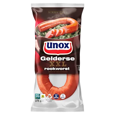 De rookworst van Unox is niet meer weg te denken uit de Nederlandse keuken. Zo blijft de Unox Gelderse XXL Rookworst de allerlekkerste bij de Hollandse maaltijd. De unieke Unox-kruiding geeft de rookworst een vertrouwde en heerlijke smaak. Unox rookworst is heerlijk bij een dampend bord stamppot boerenkool of lekker in een rijkgevulde kom erwtensoep. Deze Gelderse rookworst is gemaakt met kwaliteitsvlees met het Beter Leven keurmerk 1 ster. De rookworsten van Unox zijn bovendien een uitstekende bron van eiwitten en vitamine B12.