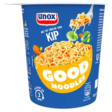 Zoals je van ons gewend bent, besteden wij veel zorg en aandacht aan onze receptuur en onze ingrediënten. Daarom bevat Unox Good Noodles Kip geen kunstmatige kleurstoffen en conserveermiddelen. Unox Good Noodles biedt een gevarieerd aanbod van snackmaaltijden om van te genieten waar en wanneer je maar wilt: thuis, tijdens het studeren, op kantoor, voor het sporten of gewoon even tussendoor!