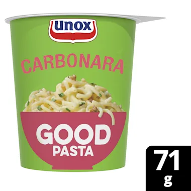 Het leven kan soms druk zijn. Werk, sport, vrienden, familie, we rennen constant van hot naar her. Soms heb je dan een goed vullende snack of een makkelijke maaltijd nodig die snel je trek stilt. Probeer dan eens Unox Good Pasta Carbonara. Een snel en heerlijk pastagerecht met spaghetti, een carbonarasaus en heerlijke stukjes spek. Deze instant pasta is klaar in een handomdraai, dus ideaal als tussendoortje of snelle, kleine maaltijd.