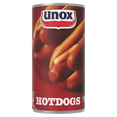 Unox Hotdogs Worsten zijn bereid naar Amerikaans recept, maar gewoon gemaakt in Brabant. Deze hotdogs worden bereid met varkensvlees met Beter Leven-keurmerk 1 ster en met de unieke Unox-kruiding, die bestaat uit met zorg geselecteerde specerijen. Hierbij worden geen toegevoegde smaakversterkers gebruikt. Met deze heerlijke Unox-hotdogs weet je zeker dat je iets goeds op tafel zet! Lekker als echt broodje hotdog: met zuurkool, een uitje, mosterd en ketchup. Of gewoon op een boterham natuurlijk. Verwen jezelf en je familie met een lekkere hotdog als snack, een tussendoortje of tijdens de lunch. Het blik van de Unox Hotdogs is geheel recyclebaar.