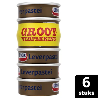 Unox Reguliere Leverpastei is heerlijk voor op je brood of op een toastje bij de borrel. Daarbij is de leverpastei van Unox beloond met het Beter Leven-keurmerk 1 ster. Dit betekent dat de varkens waar de leverpastei van gemaakt wordt, een beter leven hebben gehad dan varkens zonder dit keurmerk. Dit keurmerk met strikte richtlijnen van de dierenbescherming geeft aan hoe goed er voor het dier achter het product gezorgd werd. Unox Leverpastei is verkrijgbaar in een reguliere, magere en vegetarische variant. Dit is een voordeelverpakking met 6 blikjes reguliere leverpastei. In de verpakking zit bovendien een handig afsluitbaar deksel.